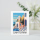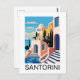 Stylish abstract Santorini Greece painting on a postcard featuring the unique architecture and a coastal view of the greek island. Great souvenir and gift idea.