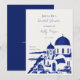This bridal shower invitation features a painting of the Santorini Greece Skyline. Easily edit the wording to meet your event needs. Change the backside colour and add your own photo to the backside if you like.