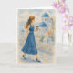 Santorini greeting card, Greece watercolor card, chic girl Santorini card, Mediterranean greeting card, Greek island card, Santorini travel card, European travel greeting card, coastal Greece card, romantic Santorini card, Greek art greeting card, Aegean Sea card, Greek style card, Santorini watercolor card, fashionable Greece greeting card, wanderlust travel card