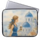Santorini laptop sleeve, Greece laptop case, chic girl Santorini laptop sleeve, watercolor Greece laptop case, Mediterranean laptop cover, Greek island laptop sleeve, Santorini travel accessory, European travel laptop case, coastal Greece laptop cover, romantic Santorini laptop sleeve, Greek art laptop case, Aegean Sea laptop sleeve, Greek style laptop cover, Santorini watercolor laptop sleeve, fashionable Greece laptop case