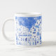 Watercolor blue and white townscape painting based on the town of Oia on the beautiful Greek island of Santorini. Original art by Nic Squirrell.
