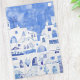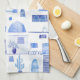 Santorini Greek Island Watercolor Townscape Tea Towel