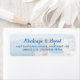 Santorini Greece Shoreline Skyline Return Address Label with the famous blue dome church and Agean sea cliffs as a faded background with elegant and modern script fonts, perfect for Greek Destination Wedding Invitations and Save the Dates.