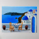 A poster with a landscape painting of beautiful Santorini, Greece.