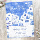 A modern watercolor painting of the picturesque town of Oia on the Greek island of Santorini to celebrate your love with a touch of elegance and beauty. Inspired by the stunning vistas of the island, these invitations feature a mesmerizing watercolor painting of Oia in dreamy blue and white hues. Perfect for a destination wedding, these invitations will set the tone for your special day and ensure your guests are counting down the days to your unforgettable celebration in Greece. Original art by Nic Squirrell.