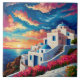 "santorini greece island art", "greek buildings and houses", "cloudy building in town", "tourist travel dramatic painting", "blue and white painted", "coastal sunset coast village", "sea ocean sky sunrise", "setting rising sun landscape", "hot pink floral flowers", "mediterranean cliff side homes"