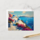 Santorini Vibrant Flowers Digital Oil Painting Postcard