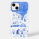 Watercolor blue and white townscape painting based on the Greek island of Santorini. Original art by Nic Squirrell.