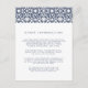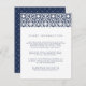 Designed to coordinate with our Santorini wedding collection in Navy, this elegant Mediterranean guest information card features navy blue lettering accented with a top border in a geometric tile pattern in navy and white. Replace the sample text with the key details of your wedding celebration.