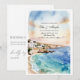 Set the tone for your destination wedding with this elegant Santorini-inspired wedding invitation, featuring a romantic watercolor coastal design inspired by the Mediterranean.