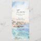 With soft ocean blues, golden shoreline tones, and charming seaside architecture, this menu brings a refined destination feel to your wedding table. The clean layout ensures your courses are easy to read, while the artistic watercolor details add a beautiful and memorable touch.