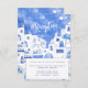 Perfect for your dream wedding on the stunning Greek island of Santorini. Features an original watercolor painting by Nic Squirrell of the picturesque town of Oia in a classic blue and white color scheme, capturing the essence of this breathtakingly beautiful island.  Whether you are planning an intimate ceremony or a grand celebration, this Santorini-themed reception details card will add a touch of sophistication and elegance to your special day. Change the text to customize.