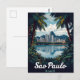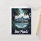 Discover the vibrant energy of Brazil's largest city with this striking vintage travel design featuring São Paulo. The artwork showcases the impressive modern skyline reflected in a peaceful body of water, beautifully framed by lush, tropical jungle foliage and towering palm trees. This retro style is perfect for urban explorers, fans of South American culture, and those who appreciate architectural and nature contrasts. An ideal souvenir, gift, or decorative piece celebrating this dynamic Brazilian metropolis.