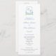 This classic wedding program design features a timeless watercolor botanical crest in sap green and mid blue.