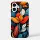 Vivid blue and orange florals bloom on a dark canvas like constellations.