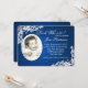 Pretty vintage white lace design and sapphire blue photo birthday party invitation. Upload your own favourite photo and personalise with text to suit your needs.