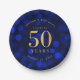 Sapphire Blue Bokeh Cheers to 50 Years Birthday Paper Plate