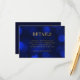 Elegant chic wedding details card featuring the words "details" in faux gold foil against a sapphire blue bokeh lights pattern background. Invitation has a blue background back side.