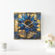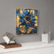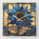 Sapphire Blue N Gold Stained Glass Sunflower Square Wall Clock