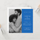 Sapphire Blue Couple Photo Wedding Invitation. Black and white filter applied to photo.