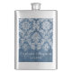 Sapphire Blue Rustic Damask Pattern Wedding Hip Flask