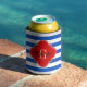 Sapphire Blue Wt Horz Stripe Red NameInit Monogram Can Cooler