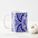 This white mandala sits on a bright, deep blue background. The colours are intelligent and introspective. Part of the Bardh Mandala Collection.
