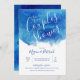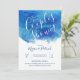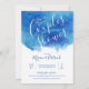 Affordable custom printed couple's shower invitations with an abstract blue watercolor background and modern hand-lettered script typography. Personalise it with your wedding shower details. Use the design tools to change the text fonts and colours or add additional text and photos to create a unique one of a kind design. A stylish and fun invitation design, perfect for a beach-themed wedding!