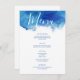 Custom printed wedding menu cards with an abstract blue watercolor border to coordinate with our Sapphire Tide collection. Customise the text with your wedding menu options. Use the design tools to edit the fonts and colours or move text around to fit your menu selections. This ocean-inspired design is perfect for a destination wedding on the beach!