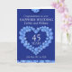 Customisation sapphire wedding anniversary card with your couples name and year of marriage and inside words. Example reads: Congratulations on your Sapphire Wedding Debbie and William 45 years 25th May 1971 to 2016. Blue sapphire heart effect art and design by Sarah Trett.