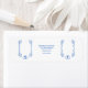 Wedding invitation return address label bells design. Customise this blue wedding invitation address label with your wedding details. Should you require any help with customising then contact us through the link on this page. Sapphire coloured bells design personalised wedding invitation return address label
