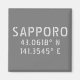 Modern, urban stencil style font with text of the latitude and longitude map coordinates for Sapporo, Japan. Great gift idea for those who love to travel or as a hometown memento.