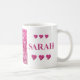 "Sarah" Pink Hydrangea Floral Letters, Cute Hearts Coffee Mug