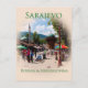 Sarajevo, the capital city of Bosnia & Herzegovina, is a charming city with echoes of their past. In this souvenir image, Pigeon Square, the centre of the old bazaar, is bustling with people shopping, children playing, and pigeons searching for crumbs. A great souvenir or travel gift image! This postcard is fully customisable.