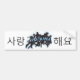 LOVE KPOP MANIA K-POP MANIA LOVE KPOP IN KOREAN LANGUAGE SARANG HAE YO Bumper Sticker Make your car a reflection of you! Get your point across with this quality bumper sticker that will outlast heavy rain, intense sunlight, and the most severe of traffic jams.