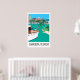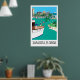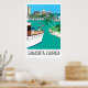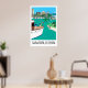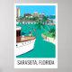 Sarasota, Florida is a gem on the west coast of the state. Artist dag dart has captured it's bay front in a moment of time and added a bit of whimsy and humour. Not only is an alligator in the piece but there are a couple of semi-nude sunbathers to find in the piece. The skyline has changed but Marina Jack remains a landmark at the Marina. The poster makes a wonderful addition to a tropical Florida home decor.