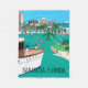 Sarasota, Florida is a gem on the west coast of the state. Artist dag dart has captured it's bay front in a moment of time and added a bit of whimsy and humour. Not only is an alligator in the piece but there are a couple of semi-nude sunbathers to find in the piece. The skyline has changed but Marina Jack remains a landmark at the Marina. You can change the text to anything you like or delete it.