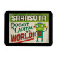 A charming Sarasota Florida vintage travel refrigerator magnet featuring a funny and friendly robot, along with fun retro style text that says, "See you in Sarasota"