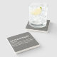 The coasters are gorgeous, a quality feel and heavy weight. They look like a precious archeological find. A rustic stone juxtaposed with a modern floral black and white print. I like the way the print goes slightly imperfect on the cut stone edges giving them a kind-of natural beauty.