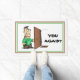 Grouchy old guy "welcomes" guests with sarcastic "you again". Funny welcome mat could put a smile on everyone's face who shows up at your door.