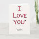 This card shows the words “I LOVE YOU*” centered on a simple off-white background, with big hand-drawn letters outlined in black and filled with pink and fuchsia stripes like marker strokes. A soft dark shadow sits behind the letters, making the main line stand out a bit from the page. The little asterisk right after “YOU” hints that there’s more to the message. Underneath, in smaller black sans-serif lettering, a footnote reads “* TOLERATE,” placed neatly below the main phrase. The mix of sweet color and the dry footnote turns it into a funny, honest note about sticking with someone even when things aren’t perfect 🥰. It can feel meaningful for a partner or close friend because it says “I care” without pretending every day is a movie moment ❤️. It’s a good choice when you want to share Valentine’s Day sentiments in a real, affectionate way.