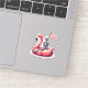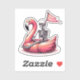 This sticker features a playful skeleton sailing a pink flamingo boat, accompanied by a flag proudly declaring "Stay Salty."