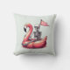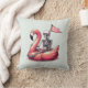 This throw pillow features a playful skeleton sailing a pink flamingo boat, accompanied by a flag proudly declaring "Stay Salty."