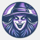 This classic round sticker features a whimsigoth fantasy digital art print of a sarcastic witch cackling at the mundane.