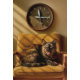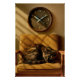 Sardine O’clock Dreamtime – Surreal Cat Art. A dreamy, surreal image where time itself revolves around a cat’s stomach. Here, a dozing feline curls on a vintage chair beneath a clock whose hands are sardines, humorously announcing it’s always dinnertime in the world of dreams. Golden light and mid-century tones lend a nostalgic, cosy feel to this tender, whimsical composition celebrating feline daydreams.