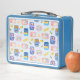 This is a standard metal lunchbox that appears to work just fine. We designed this box ourselves with an uploaded photo and custom text on the front and back. It looks absolutely beautiful except the front of the lunchbox is not centered like it shows in the photo. The print borders don't align with the inset flat part of the box where the preview photo online showed it perfectly centered in there. The back looks nice and centered though.