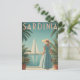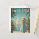 This elegant vintage poster portrays a woman dressed in classic 1950s fashion strolling along Sardinia’s picturesque promenade. Behind her, graceful sailing boats float peacefully in the turquoise harbour waters, framed by the island’s rugged coastline. The artwork uses warm, muted tones and nostalgic textures to evoke the charm and relaxed elegance of mid-century Mediterranean life. Ideal for lovers of vintage style, coastal beauty, and timeless travel art.