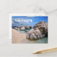 Postcard with big rocks on the sand beach of Cala Mariolu in the Golfo di Orosei, Sardinia, Italy with the text: 'Sardegna', italian for 'Sardinia'.
