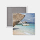 Souvenir photo magnet of the big boulder rocks in the sand and in the Mediterranean Sea at Cala Mariolu Beach on the island Sardinia, Italy.