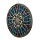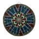 Composed of multiple sections, it features a layered and intricate appearance, with a vibrant colour palette including blues, greens, reds, and browns.
